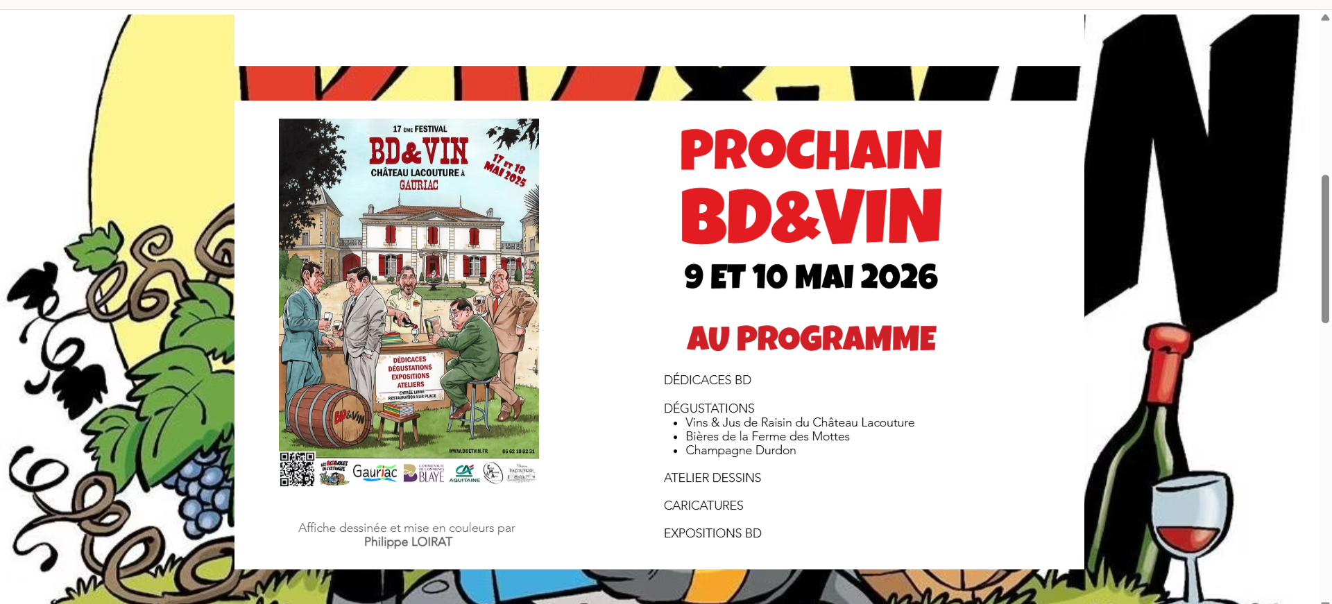18ème festival de BD & Vins à Gauriac au Château Lacouture. Les 09 et 10 mai 2026